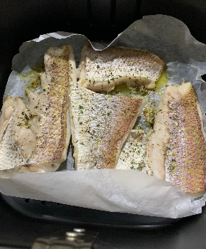 Air fryer parchment paper or silicone air fryer liners: Although most air fryer baskets are coated with a non-stick surface, food may still stick to it. This makes removing the food in one piece a little tricky. This especially applicable to fish because fish meat is delicate when cooked so it will pull apart if any bit of meat is stuck to the basket. Therefore, it is recommended to use air fryer parchment paper or silicone air fryer liners to make removal of the snapper fillets easy.