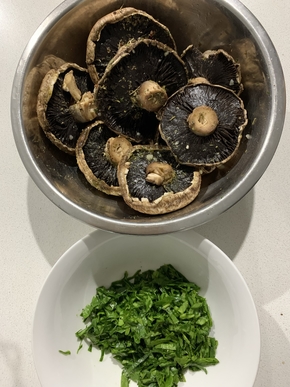 - 2. Chop the baby spinach and stuff them into the mushroom cup.